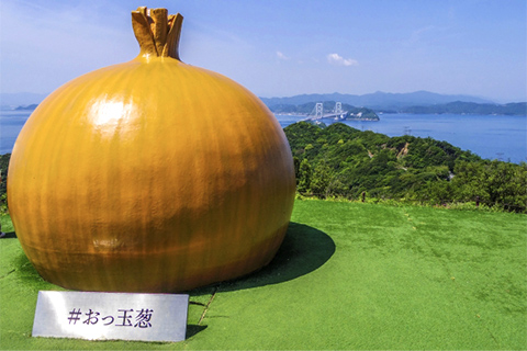 撮影スポットであるおっ玉葱のオブジェは、淡路島ならではの撮影が楽しめるスポットです。高さ2.5m、直径2.8mと巨大で、重さは約200kgもあります。グッズの貸し出しもあり、思い出に残るユニークな撮影が楽しめます。雄大な自然を背景に、旅の記念に残る1枚を収めませんか。