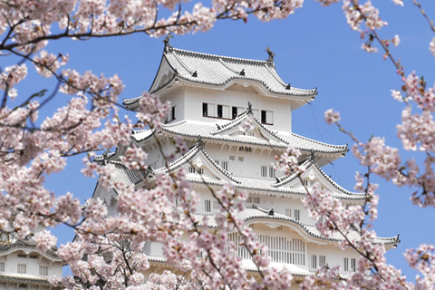 さくら名所100選にも選ばれている姫路城では、春になると約1,000本もの桜が咲き誇ります。風格のある真っ白な姫路城と桜のコントラストは圧巻です。3月下旬から4月上旬に見頃を迎え、開花期間中は夜間のライトアップも実施されます。
