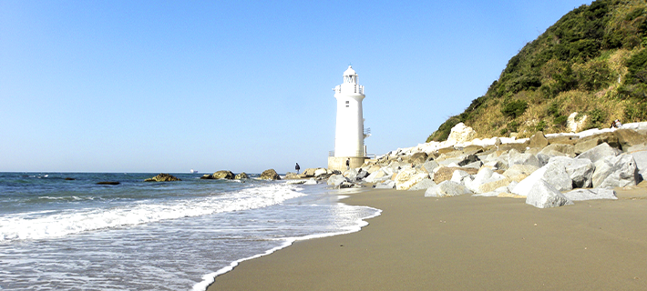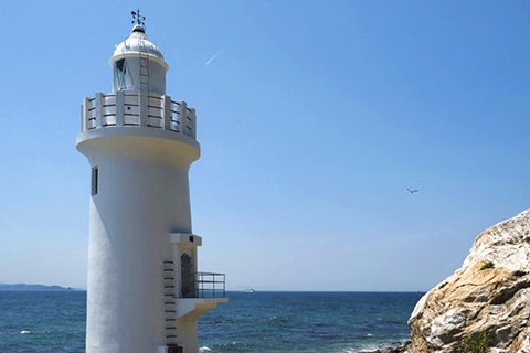 伊良湖岬灯台は、渥美半島の最先端に建つ灯台です。渥美半島へ到着する船の道しるべとして、長く親しまれてきました。伊良湖岬のシンボルとして知られ、日本の灯台50選にも選ばれています。