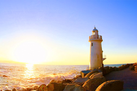 周辺には遊歩道が整備され、三河湾と太平洋が広がる絶景を眺めながら散策が楽しめます。晴れた日の夕暮れ時の景色は特に見どころで、明かりの灯る灯台と夕焼けに染まる空は、息を呑む美しさです。渥美半島を訪れたなら、伊良湖岬灯台で家族や大切な人とぜひ特別なひとときを過ごしてくださいね。