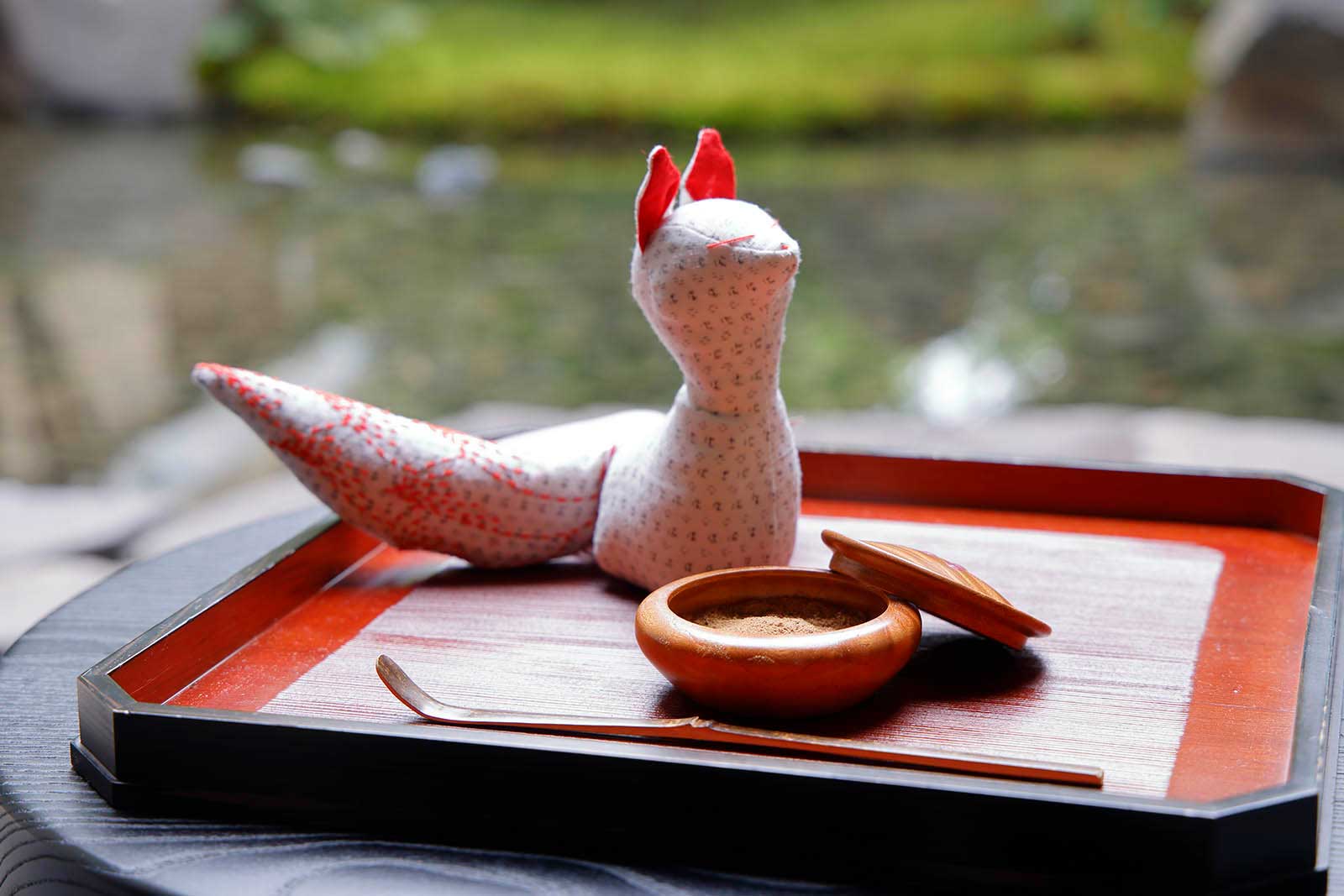京都の「身を清める」文化に倣い、香を用いたウェルカム・リチュアルはチェックイン時の儀式。香木の老舗〈天香堂〉によるオリジナルブレンドのお香を手のひらで温めて静かに深く香りを吸い込めば、日頃せわしなく使っている脳のノイズがすっとなくなるような気に。このひとつの体験が、からだを緩める非日常へのスイッチとなるのです。