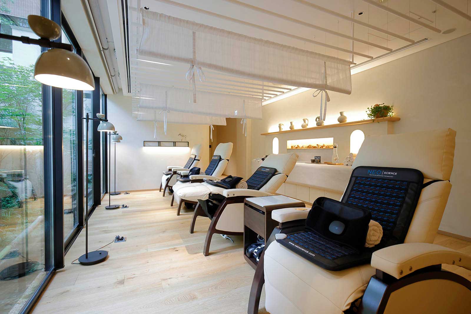 滞在中は「バイオハック リカバリー ラウンジ」(有料)で疲労回復のための機器を使ったり、ヨガのレッスン(有料)やサウナや温浴施設でくつろいだり、プールで泳いだりしながら過ごすことで、乱れた体内リズムを整えていきます。