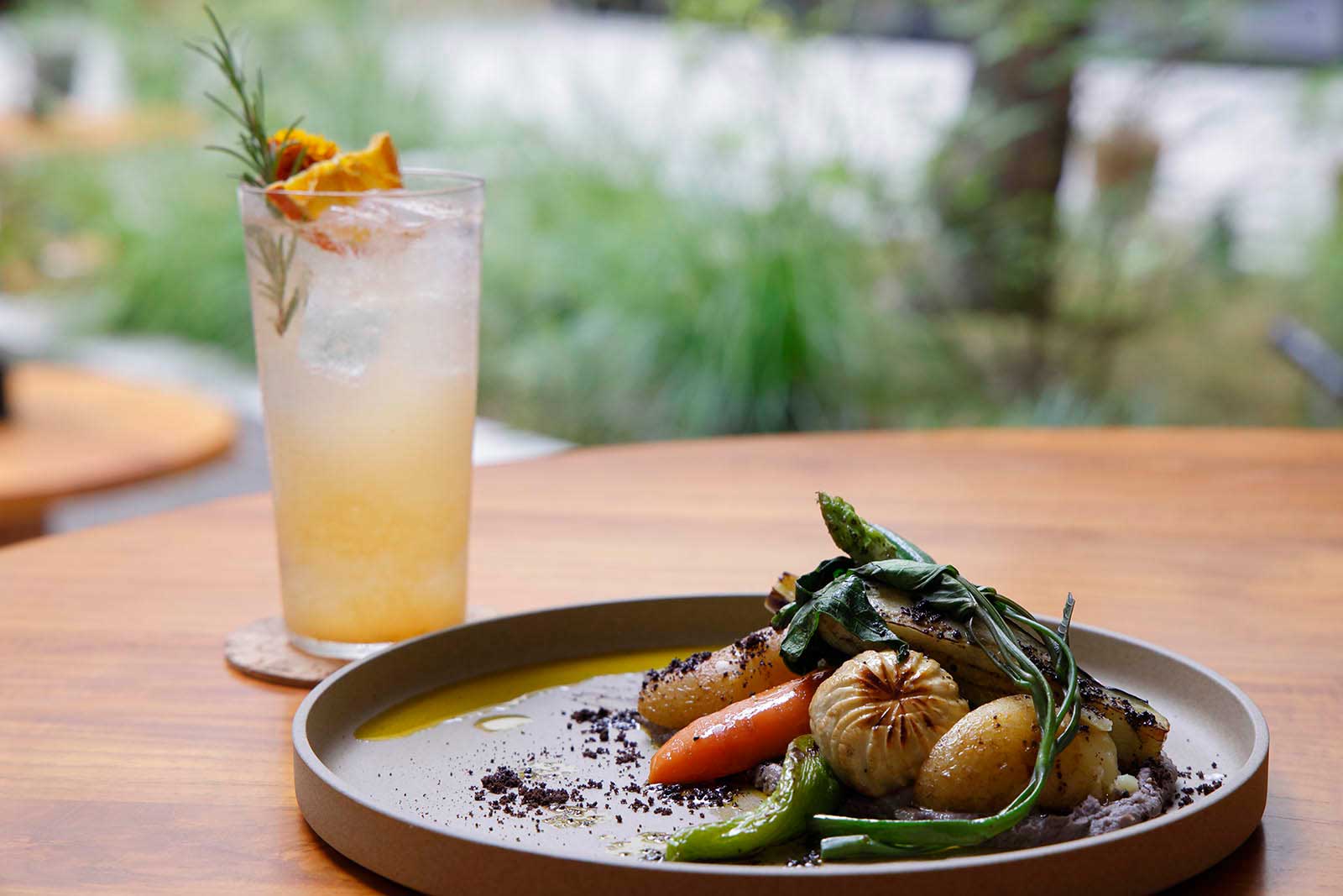 食材はできるだけオーガニックのものにこだわり、ホテル内で育てているハーブなどもたっぷり使用。鮮度のいい野菜を中心とした料理はどれ活き活きとした野菜の香りと味を感じます。薪と炭火を熱源とするジョスパーオーブンで、ガリッと香り高く焼いた肉や魚も人気です。