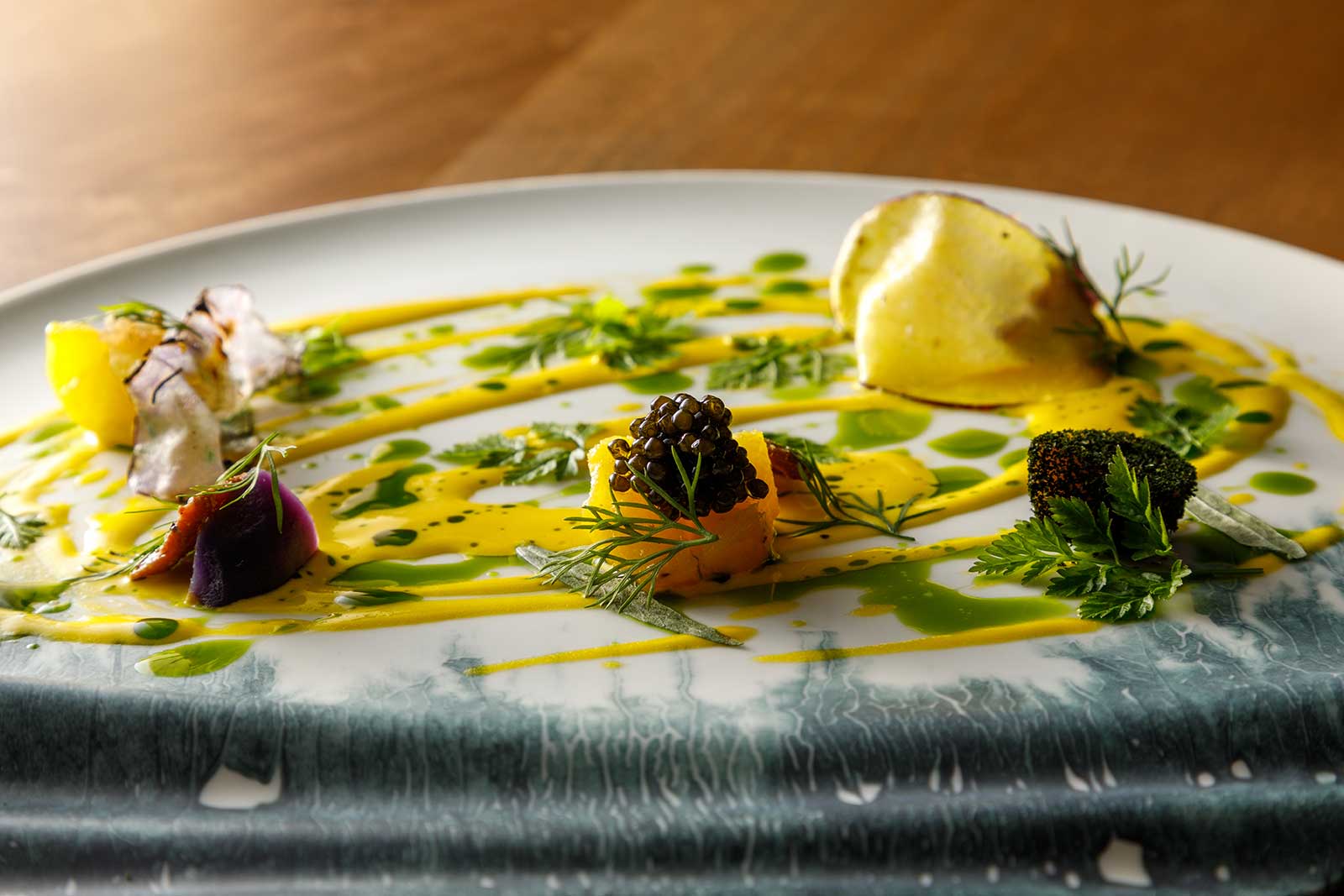 畑で採れた3種類のじゃがいもが主役ではあるけれど、たっぷりとかけられたサフランソースは、今までのサフランの概念が覆るほどの香りのよさ。タシ氏が地域のコミュニティ活動を通じて出合った感動が、この一皿を通じて伝わってくる。