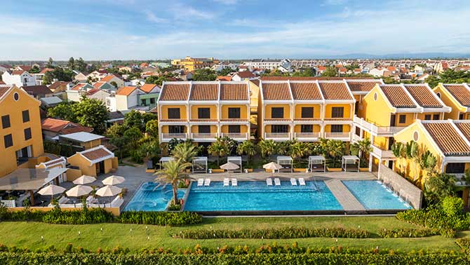 優雅に流れるホアイ川沿いに静かに佇むこのホテルからは、ホイアンの歴史ある街並みを一望できます。